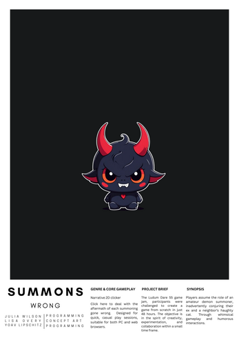 Players find themselves navigating the hilarious mishaps of an amateur demon summoner. A blend of humor and chaos, the game offers a delightful experience crafted from scratch for the game jam.